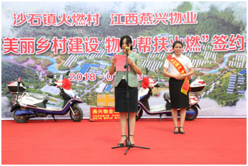 為積極響應黨中央實施鄉村振興戰略和習近平總書記提出的“把實施鄉村振興戰略擺在優先位置”的號召,創新建立村企結對幫扶機制,加快推進火燃村美麗鄉村建設步伐。2018年7月13日上午,章貢區沙石鎮火燃村、江西燕興物業“美麗鄉村建設?物業幫扶火燃”簽約儀式在火燃村文化舞臺隆重舉行。江西燕興物業管理有限公司董事長劉燕與火燃村黨支部書記郭學貴代表雙方致辭并簽訂《鄉村振興物業幫扶協議》,攜手開展結對幫扶美麗鄉村建設活動。燕興物業將采取“建立秩序維護員和消防安全員隊伍,建立完善標識、環境和宣傳系統,建立文化養老產業等基地”等幫扶措施,幫助火燃村加強物業管理硬件與軟件建設,推進村莊環境衛生整治;開展垃圾分類試點,推行村民生活垃圾無害化、減量化、資源化處理;建立完善“戶分類、村收集、鎮轉運、區處理 ”的垃圾收運處理體系和環境衛生管理長效機制,提升環衛管理水平和運行質量,全面改善人居環境,齊心協力把火燃村建設成為“產業興旺、生態宜居、鄉風文明、治理有效、生活富裕”的社會主義新農村。