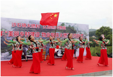 簽約儀式前,燕興物業員工與火燃村的村民們同臺進行了文藝表演,開場舞《歡天喜地豐收年》、舞蹈《沙石表嫂扭起來》、民樂演奏《喜洋洋》、軍體操《燕興物業形象展示》、舞蹈《十送紅軍》等節目輪番上臺,用激情的舞蹈、特色的鄉村小戲和燕興人的精神風貌展示等節目,開啟燕興物業幫扶火燃村建設美麗鄉村行動。