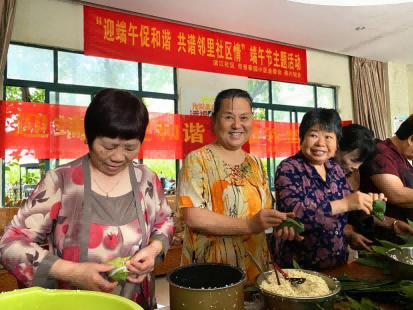 帝景豪園小區聯合濱江社區、小區業委會開展“迎端午促和諧 共譜鄰里社區情”端午節主題活動,社區居民齊聚一堂,盡顯巧手,大家有說有笑,一邊交流著包粽子的技巧,一邊分享著端午節的傳統風俗。活動最后,還將包好的粽子上門慰問了小區的高齡老人。
