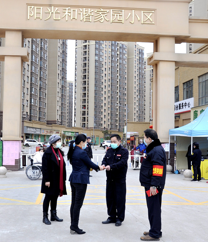 第四黨支部書記肖忠良配帶黨徽亮出身份,鼓勵(lì)業(yè)主、員工戰(zhàn)勝恐慌,對特殊人群上門勸導(dǎo)居家隔離,忇調(diào)配合使這個(gè)萬人小區(qū)呈現(xiàn)平和安寧的良好氛圍。共產(chǎn)黨員李華標(biāo)為做好同伴的防護(hù)安全,多方尋找急需的口罩,體溫槍、消毒水、帳篷等緊缺物資。于是出現(xiàn)了和諧家園的業(yè)主、員工紛紛把自己家里購買的口罩、酒精帶給物業(yè)使用,把家里的綠植放到物管處美化環(huán)境的一幕幕感人場面。