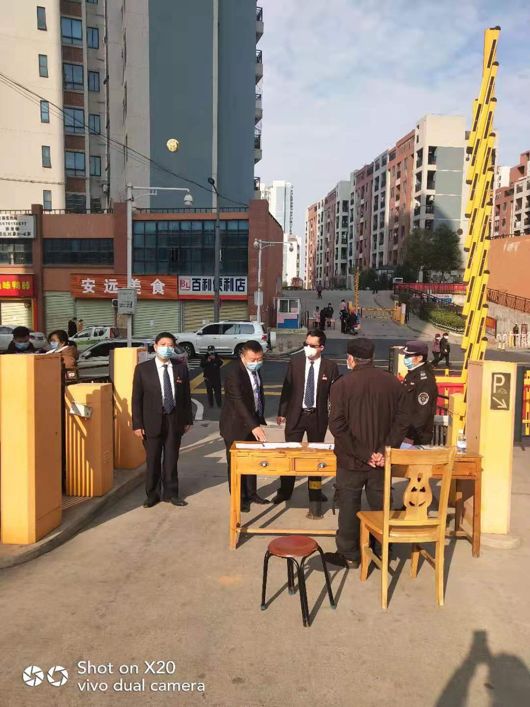 第十五黨支部書記,運(yùn)營總監(jiān)童章杰、第四黨支部書記,運(yùn)營經(jīng)理肖忠良在陽光和諧家園小區(qū)對進(jìn)出車輛和人員進(jìn)行排查