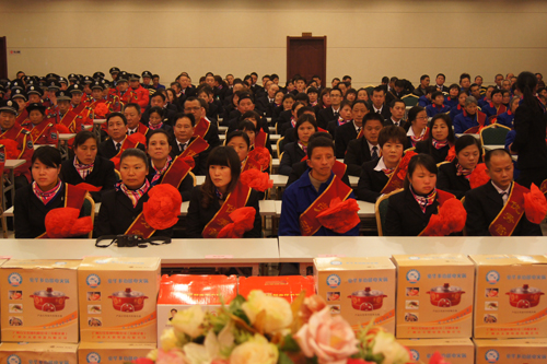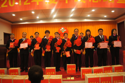 大會還宣布了榮獲2012年度先進集體和117名先進個人的名單,并在歡快的頒獎曲中為先進集體公務員小區、石城縣行政服務中心頒發了獎牌、獎金,為優秀員工佩戴了綬帶、紅花,頒發了榮譽證書、獎品,公司領導與獲獎人員愉快地合影。其間,大會還安排了抽獎活動,共有13人中獎,領取了獎品。最后,在悅耳動聽的《燕興之歌》聲中園滿結束了大會議程。