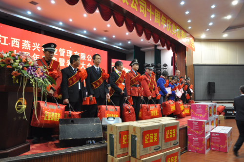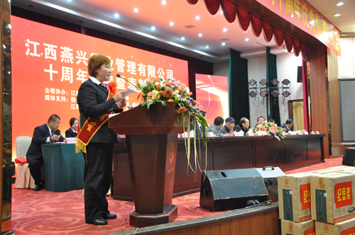 2013年12月26日下午2時,參加燕興物業成立十周年慶典表彰大會的領導、嘉賓和員工們已陸續來到贛州賓館一號會場,在嘹亮的國歌聲中大會由吉安商會會長劉振德宣布開始。