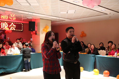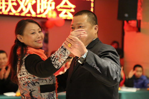 晚會上,首先由傳統節目“擊鼓傳花”拉開序幕,當紅花落在手中,鼓點戛然而止時,手拿紅花的人必須說出含“羊”字的祝賀語,“喜氣洋洋、洋洋得意、羊年大吉”等吉祥語此起彼伏。晚會上還精心準備了幾個小游戲,由各項目部派出精兵強將參加了“蘿卜蹲、你比劃我來猜”等游戲,勝出者手捧獎品喜笑顏開,抽獎環節更是讓人期盼揪心。接著員工們紛紛上臺亮出嗓門,一曲曲高歌將晚會推向一個又一個高潮,董事長劉燕夫婦也為大家深情演唱了一首老情歌。