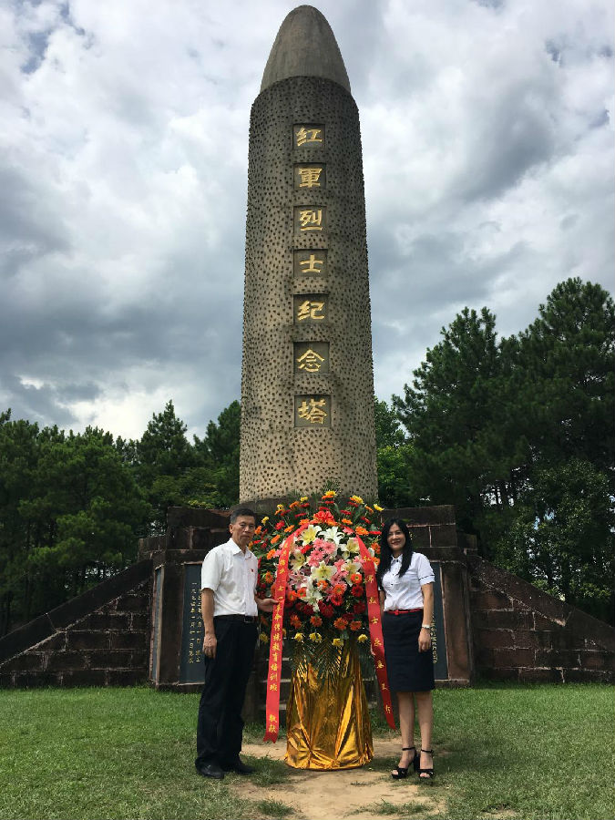 隨后,大家站在紅軍烈士紀念塔前,舉行敬獻花籃儀式。公司領導上前整理花籃緞帶,全體人員向紅軍烈士默哀、向紅軍烈士三鞠躬,表達了對所有革命先烈的崇敬之情。并在紀念塔前舉行了莊嚴的集體宣誓活動,重溫入黨誓詞,牢記使命,不忘初心。