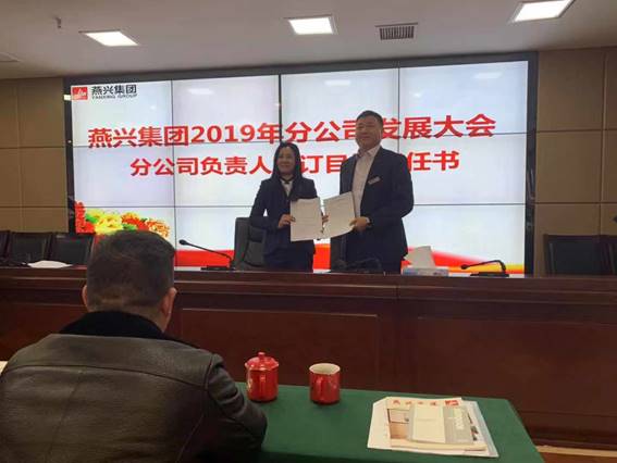 董事長劉燕與分公司總經(jīng)理簽訂目標責任書