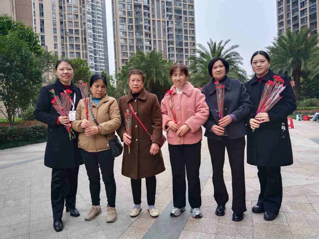 3月8日,物業工作人員為女性同胞送上嬌艷的康乃馨,一束束盛放的鮮花、一句句溫情的祝福,傳遞著對女性同胞的尊重與關愛,也寄托著對姐妹們健康美麗、幸福順遂的美好祝愿。