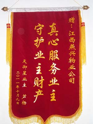 感謝信 江西燕興物業(yè)管理有限公司: 我是“天御星”小區(qū)3棟9A的業(yè)主蘆楊,于9月10日凌晨開車回家,上樓時(shí)按錯(cuò)了遙控器車鎖,把后備箱打開了(... 2011-11-01
