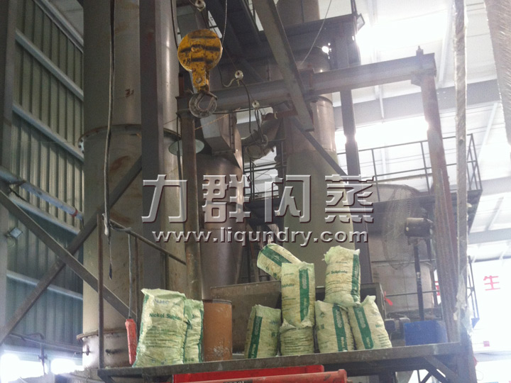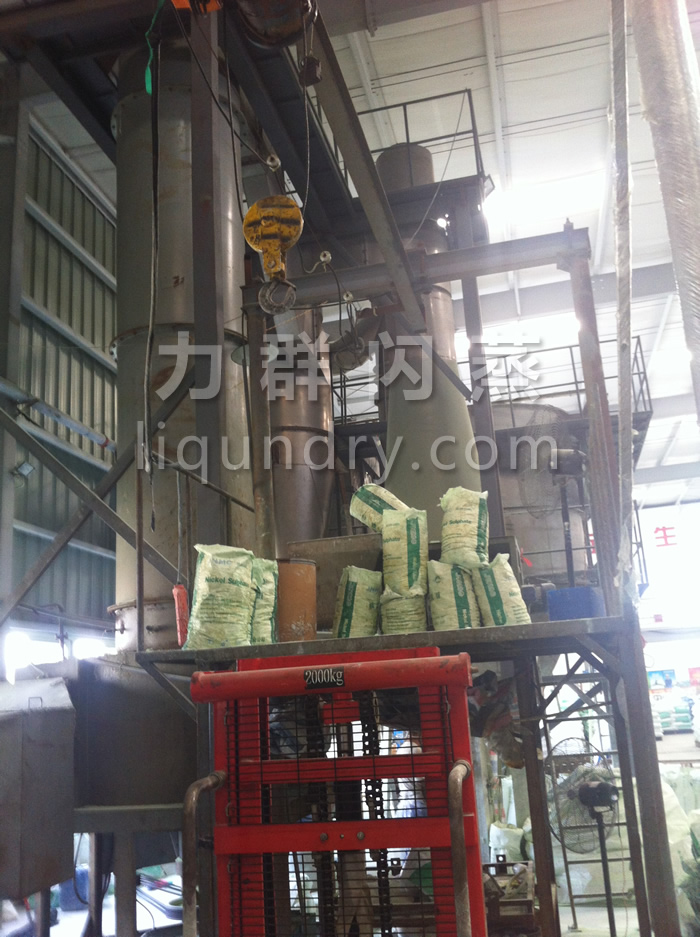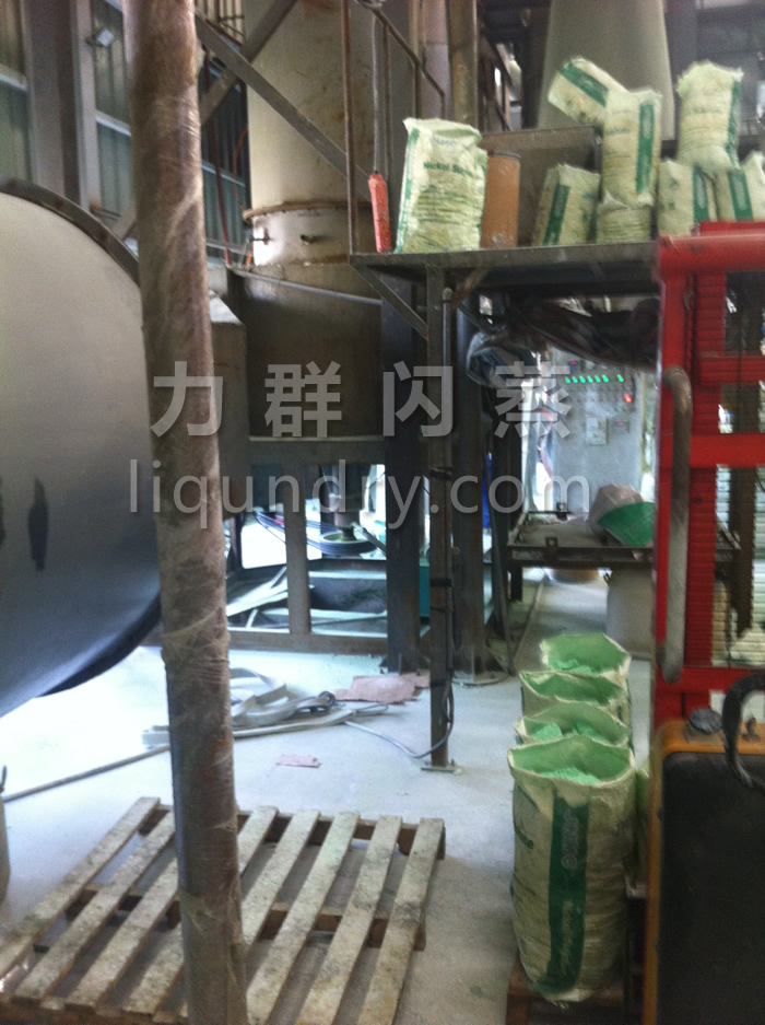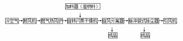 經(jīng)換熱器加熱后的潔凈空氣被鼓入進(jìn)風(fēng)口,以適宜的速度旋入干燥室底部的環(huán)隙,然后按切線方向進(jìn)入干燥室,并呈螺旋狀上升:同時,物料則由可無級調(diào)速的加料器定量加入塔內(nèi)。在干燥塔內(nèi),物料與熱空氣進(jìn)行充分、高效的質(zhì)熱變換,被干燥的粉狀物料隨同熱風(fēng)一起輸送至分離器,其中成品收集包裝,而尾氣則進(jìn)一步經(jīng)除塵裝置處理后排空。